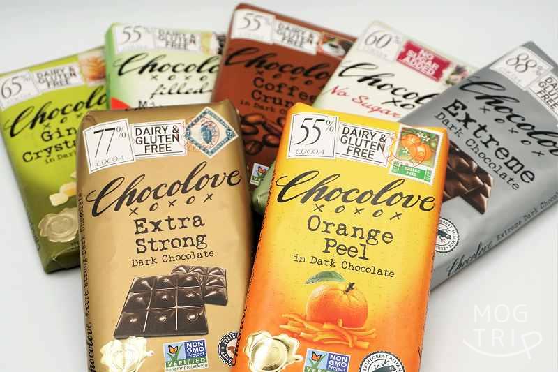「Chocolove(チョコラブ)」のチョコレートは、とにかく種類がもの凄く豊富。フレーバーが充実していることはもちろん、低カカオ・ハイカカオのものも充実しているので、食べ飽きることもありません。