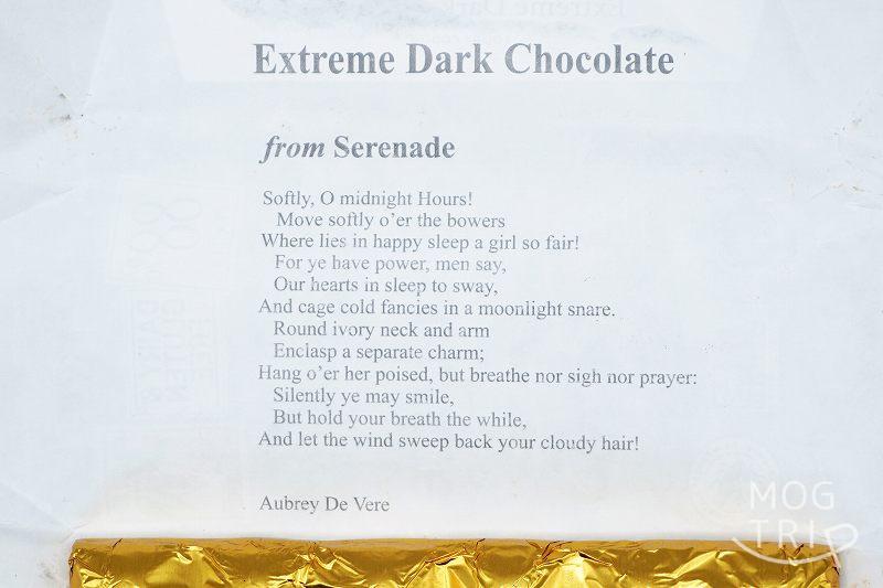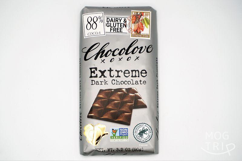 とにかく濃厚なチョコレートを楽しみたい場合、よりハイカカオのチョコレートがおすすめ。チョコラブシリーズの中で〝一番ハイカカオ〟なチョコレートが、カカオ88%の「エクストリームダークチョコレート」です。