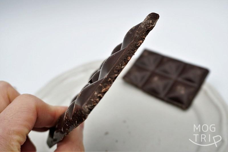 意外となめらかで、ザラザラするような嫌な舌ざわりもなし。甘さが控えめで、名前の通りとってもビター。甘いものが得意でない方におすすめです。とはいえ市販のハイカカオのチョコよりかは、少~しだけ甘みが強く感じられました。ちょっと溶けずらい感じもしましたが、ハイカカオの良さがしっかりと表れています。