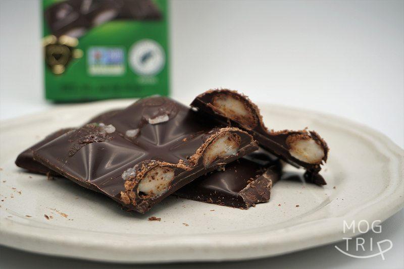 なおクリームが含まれる分、他のチョコレートより一片が大きめ。チョコの表面が白くなっていたら、それはクリームがにじみ出てきた跡です。