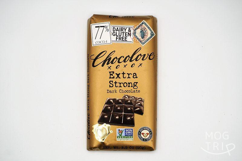 とにかく濃厚なチョコレートを楽しみたい場合は〝ハイカカオ〟のチョコレートを選びましょう。チョコラブシリーズの中で「ハイカカオ かつ 食べやすい」のが、カカオ77%の「エクストラストロングダークチョコレート」です。