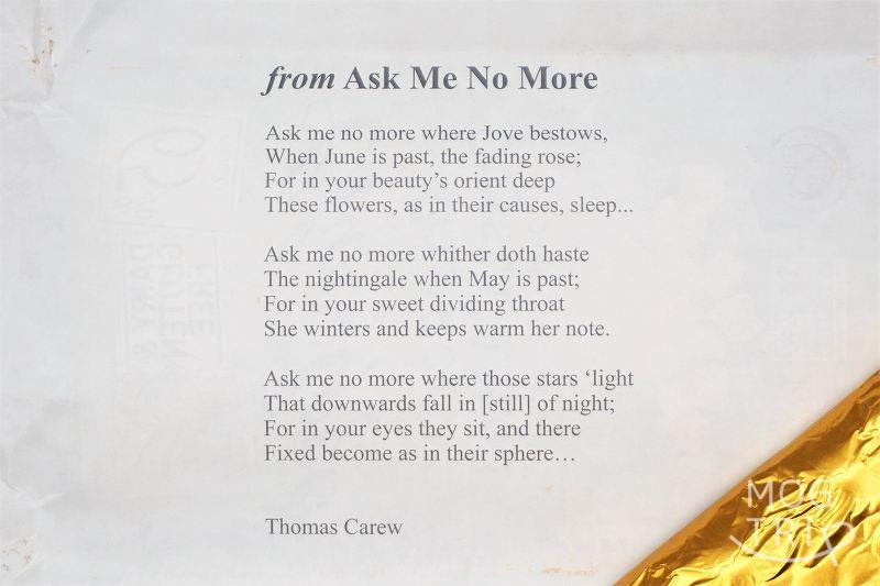 また手紙を連想させる様な、独自色の強いパッケージにも注目。包み紙の外側には必ず切手が、内側には文面が印刷されていて、こんなところからも遊び心が見てとれます。
