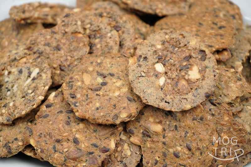 皆さんがよ~く知っている小麦粉を使ったクラッカーとは、まったくの別物。おやつよりも食事やおつまみにピッタリな味わいなので、チーズやワインと一緒に楽しむのがベストでしょう。