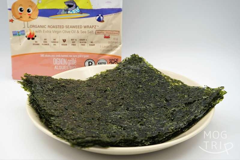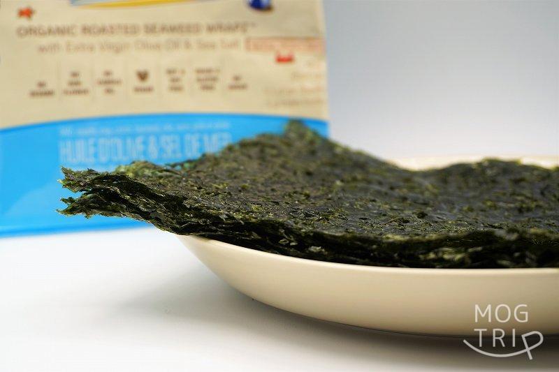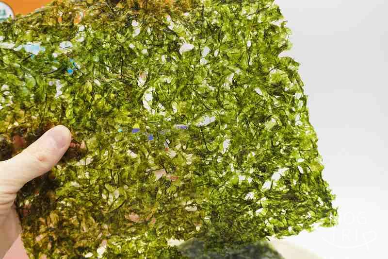 海苔の目は粗いですが、その代わりに力強い海藻の食感が楽しめ、噛むほどにおいしく感じられました。1枚当たり3gの海苔が、一袋に5枚入っています。