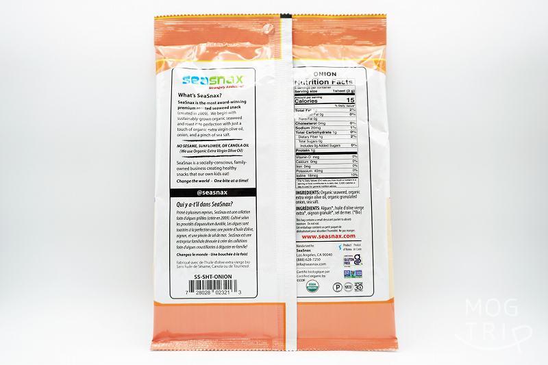 INGREDIENTS:Seaweed chip(sweet rice、rice、poteto starch、seaweed、onion)、rice bran oil、granulated onion、sea salt、coconut sugar、turmeric