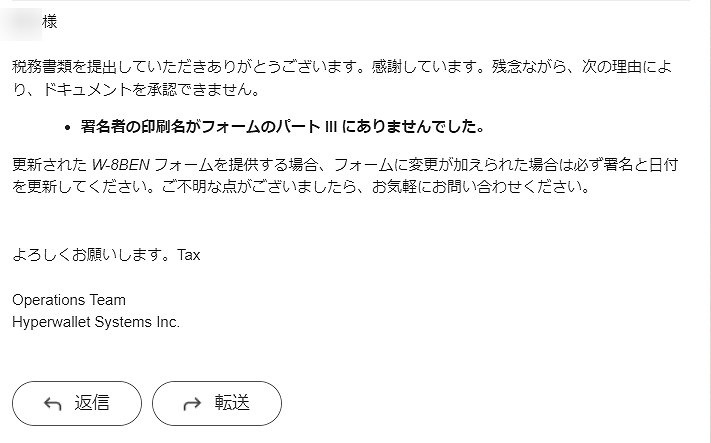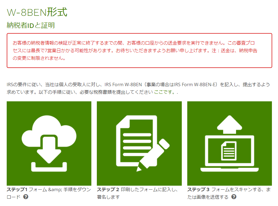 仮に納税者証明の提出を怠った場合、Hyperwallet から 送金することができなくなってしまいます。