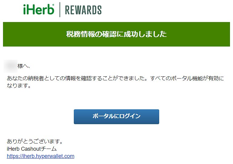 手続きが完了したら、アイハーブから 上記の様なメールが届きます。