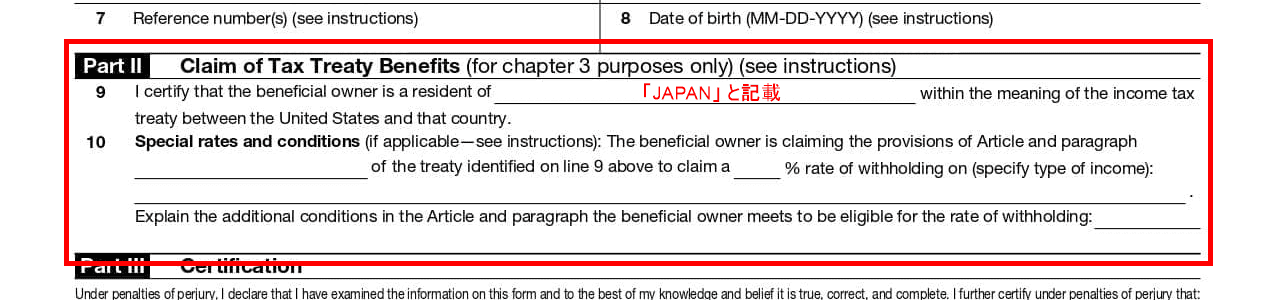 PartⅡは「Claim of Tax Treaty Benefits(租税条約の利益の請求)」。
