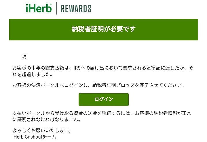 “iHerb(アイハーブ)” の 紹介プログラムを続けていると、「納税者証明」が必要になる場合があります。